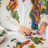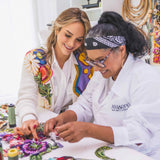 Respetamos y preservamos las antiguas técnicas de bordado y los oficios artesanos. Nuestras expertas bordadoras locales utilizan métodos tradicionales para crear diseños únicos e inolvidables. Garantizamos una remuneración justa y respetamos a todos nuestros artesanos, fomentando el valor artístico de su trabajo preservando el derecho a un empleo digno que dignifica, empodera y abre caminos al desarrollo personal y económico de las familias
